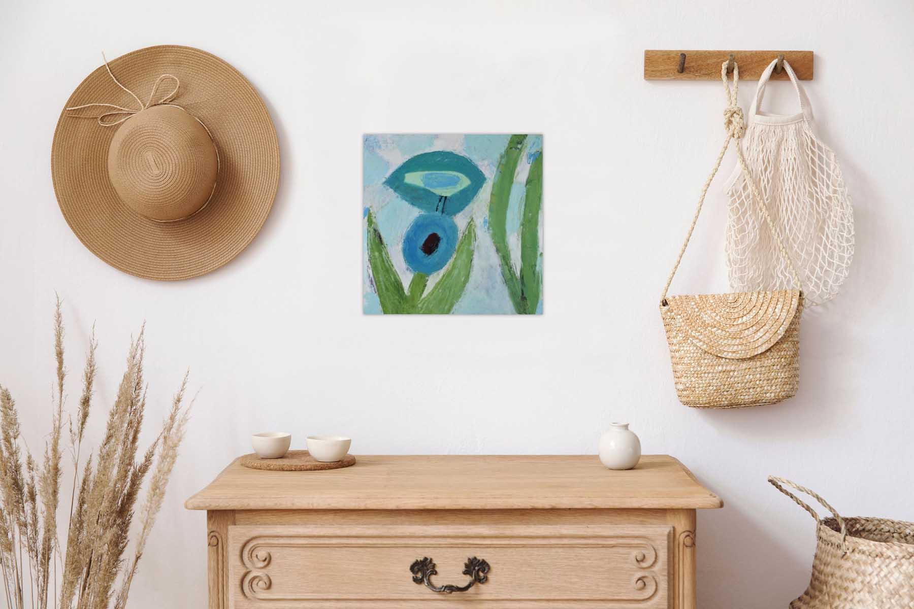 With its bright bold graphics of birds and flowers, this small painting will add a flash of colour to any space. Beautiful and bright like all of Lucy’s work.